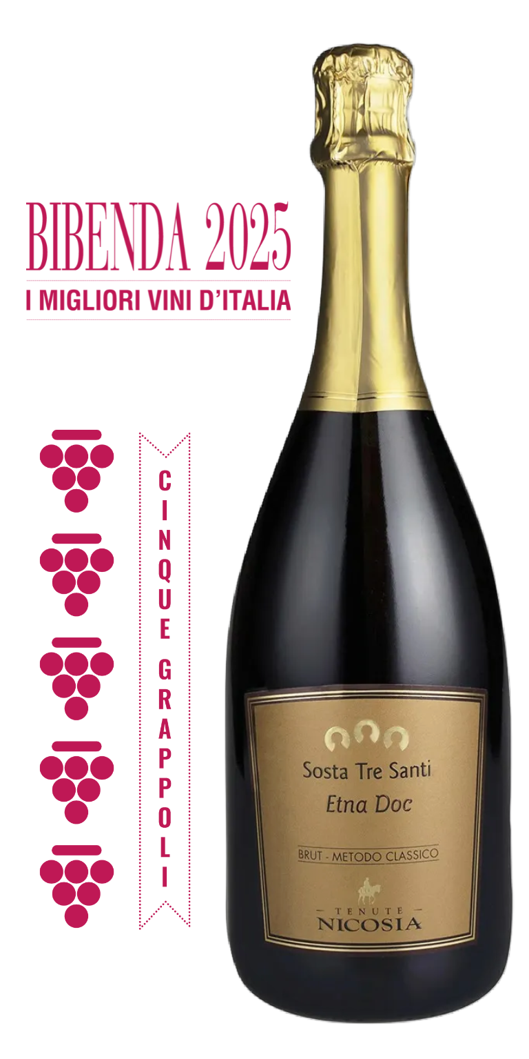 Da selezionate uve Carricante, coltivate ad alta quota sul terreno vulcanico, nasce questo Brut metodo classico della collezione Sosta Tre Santi, che rimane in affinamento sui lieviti in bottiglia per almeno 18 mesi. Il delicato perlage, l’eleganza dei profumi, la sua grande freschezza e mineralità ne fanno uno spumante ottimo da bere sia come aperitivo che a tutto pasto.