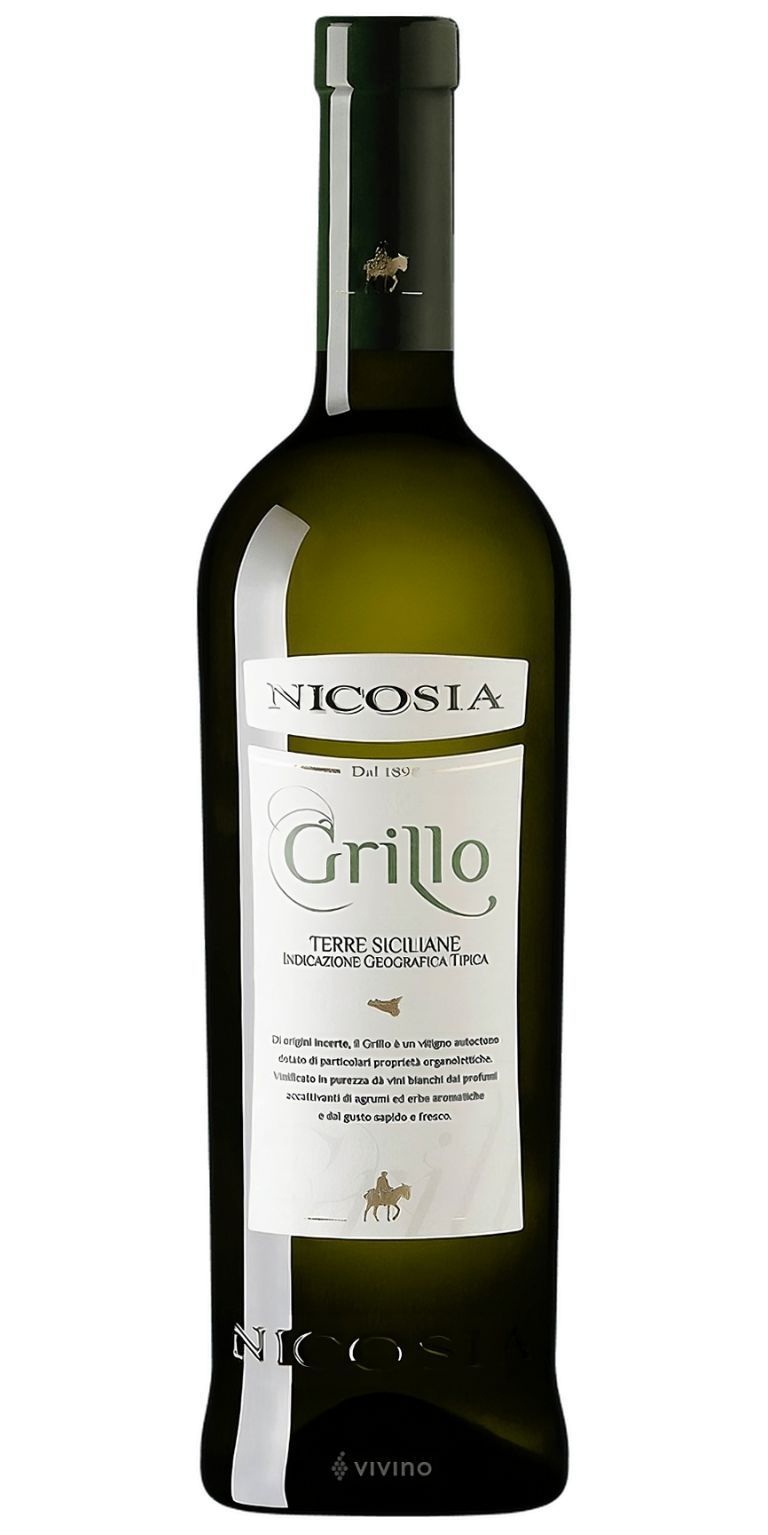 Il Grillo della famosa cantina Nicosia è un vino bianco dell'omonima linea che è dedicata alla terra e a tutte quelle persone che hanno a cuore il rispetto del territorio. Le uve vengono attentamente selezionate e pressate in maniera soffice, la vinificazione invece avviene esclusivamente in vasche d'acciaio. Il colore è giallo paglierino luminoso ed i profumi sprigionati richiamano note floreali ed agrumate che si fondono alla perfezione con sentori di erbe aromatiche. Il sorso è agile, fresco, sapido e di buona persistenza.